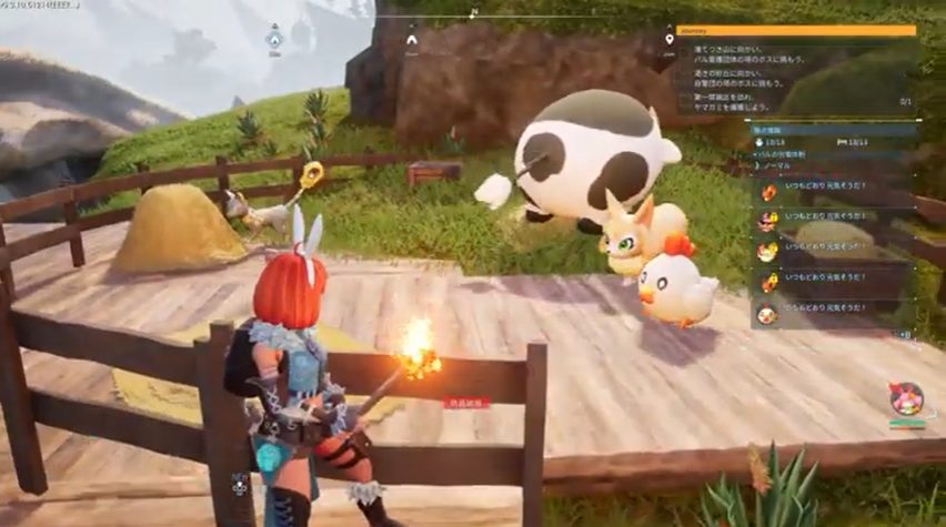 ちょっと画質が粗くて見づらいですが、下の画像は、パルが家畜牧場に到達できず、タマコッコがなかなか卵を産んでくれなくて困っているところです。