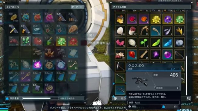 拠点内にある全ての収納(ギルドチェストとエサ箱以外)に入っている物を、この機械一つで把握し、取り出すことができます!